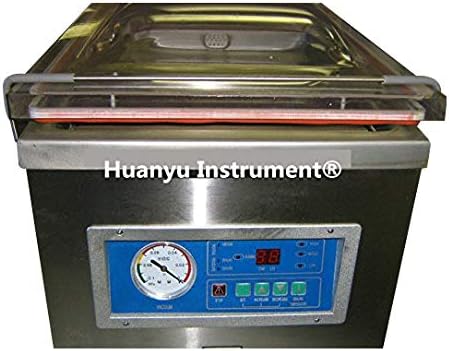 Зображення 1: Фронт view of the Huanyu DZ260 Automatic Vacuum Sealer, showing the main unit and the control panel with a pressure gauge and digital display.