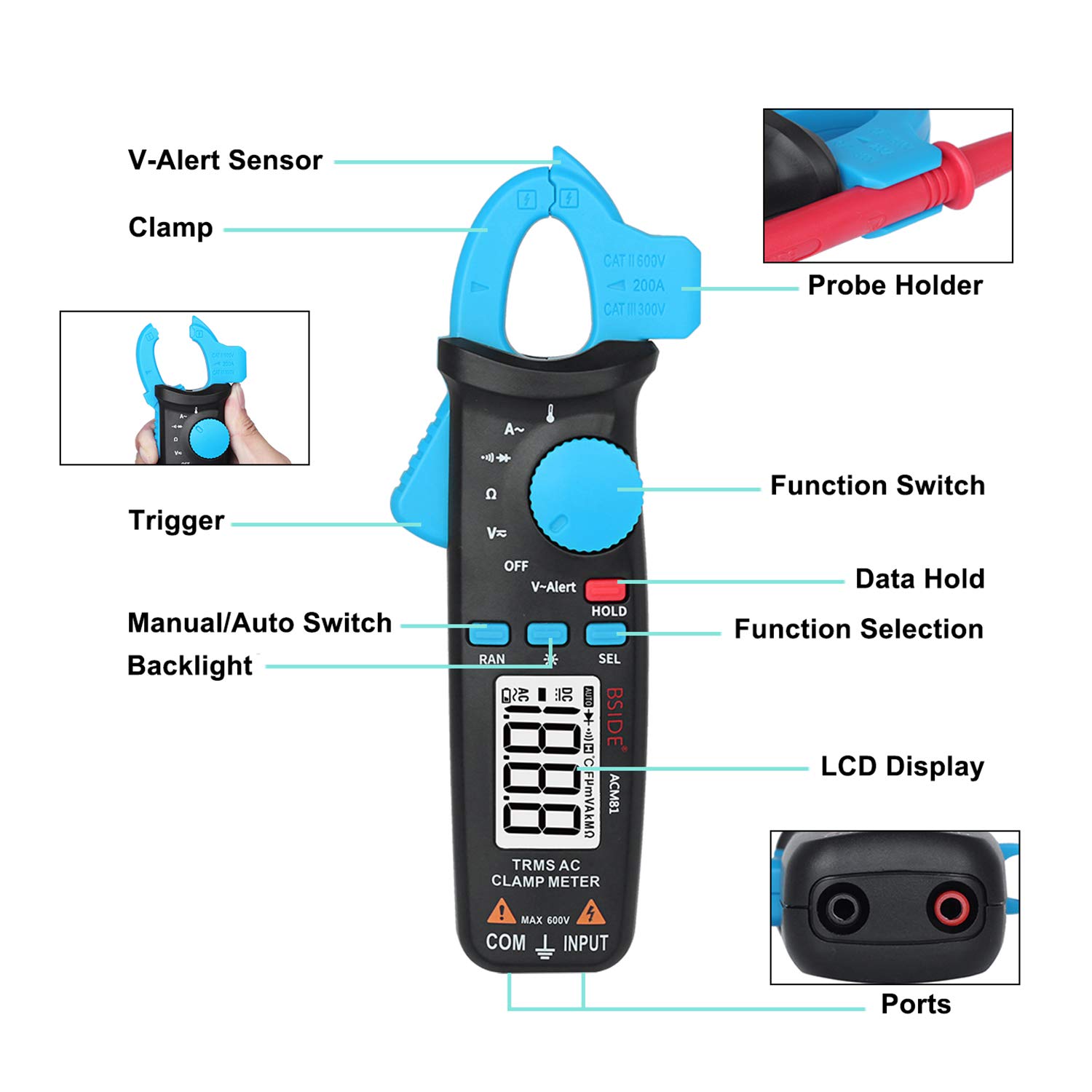 Familiarize yourself with the components of your BSIDE ACM81 Digital Clamp мультиметр.