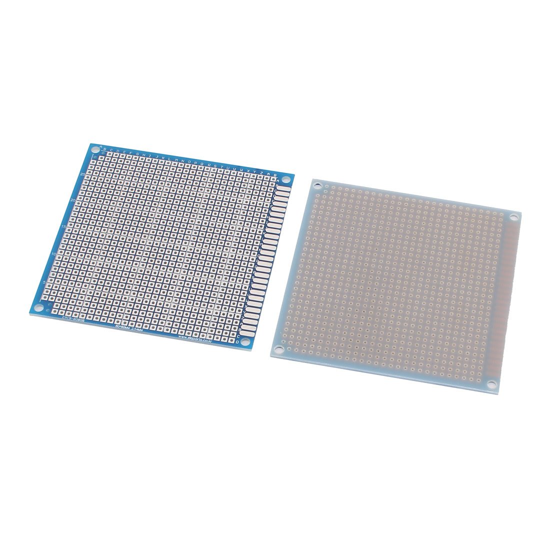 Each board measures 8 x 8 cm (3.1 x 3.1 inches) and features standard 0.1-inch industrial quality spacing for component mounting. The single-sided copper PCB is treated for easy soldering and extended shelf life, with referencing numbers printed on both sides for convenient identification of individual holes.