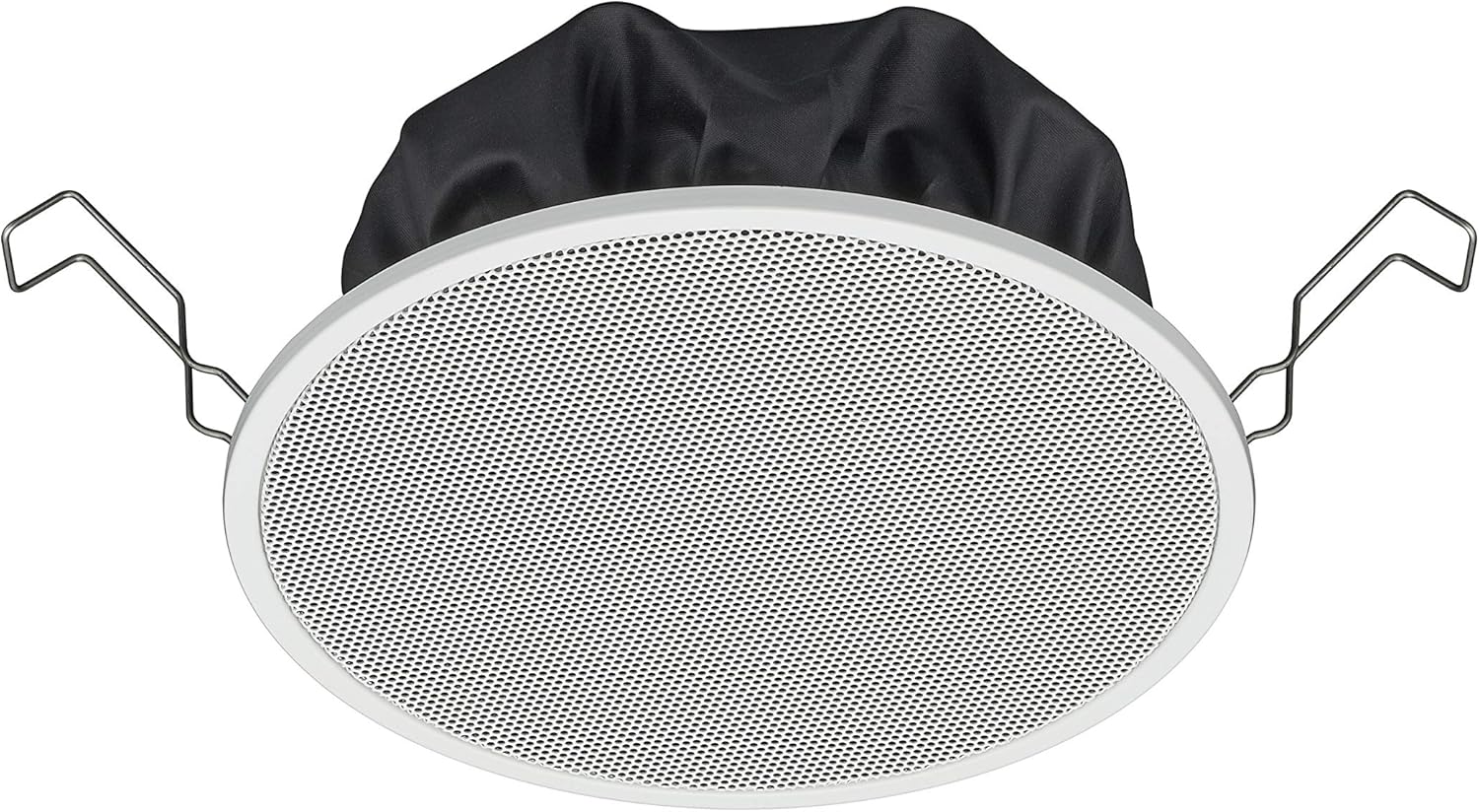 - Insert Speaker into Opening: Carefully insert the speaker into the prepared ceiling opening. The mounting clips (visible in the image) are designed to secure the speaker in place.