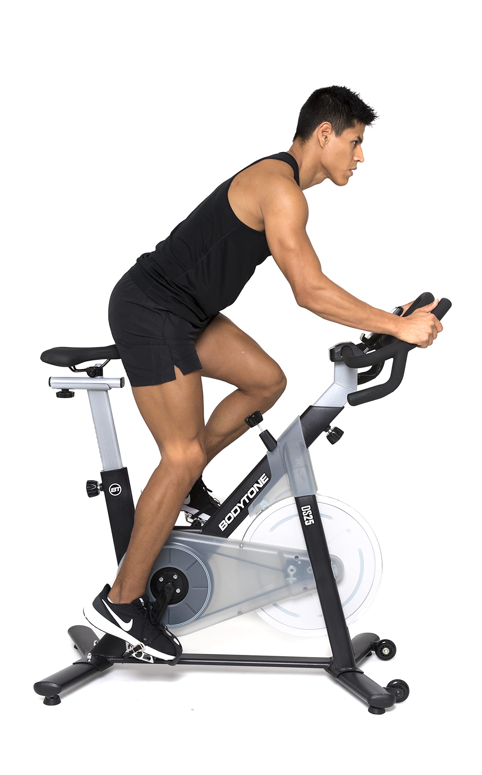 Image: A close-up shot of the "BODYTONE DS25" branding on the bike's frame, highlighting the product's design and model identification.