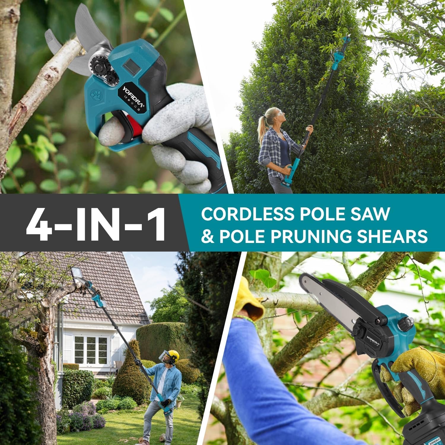 Thank you for choosing the Yofidra 4-in-1 Cordless Pruning Kit. This innovative tool combines a battery-powered telescopic pruner, branch cutter, portable telescopic chainsaw, and pole saw, designed to meet various gardening needs with a single device. This manual provides essential information for the safe and efficient operation, maintenance, and troubleshooting of your new tool.