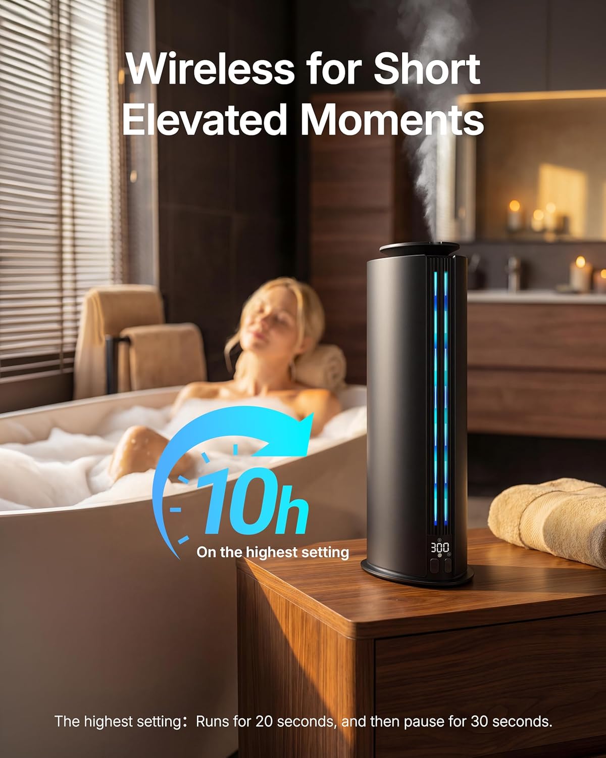 - For cordless operation, ensure the internal battery is charged. The diffuser can run for up to 10 hours on the highest setting when fully charged.
