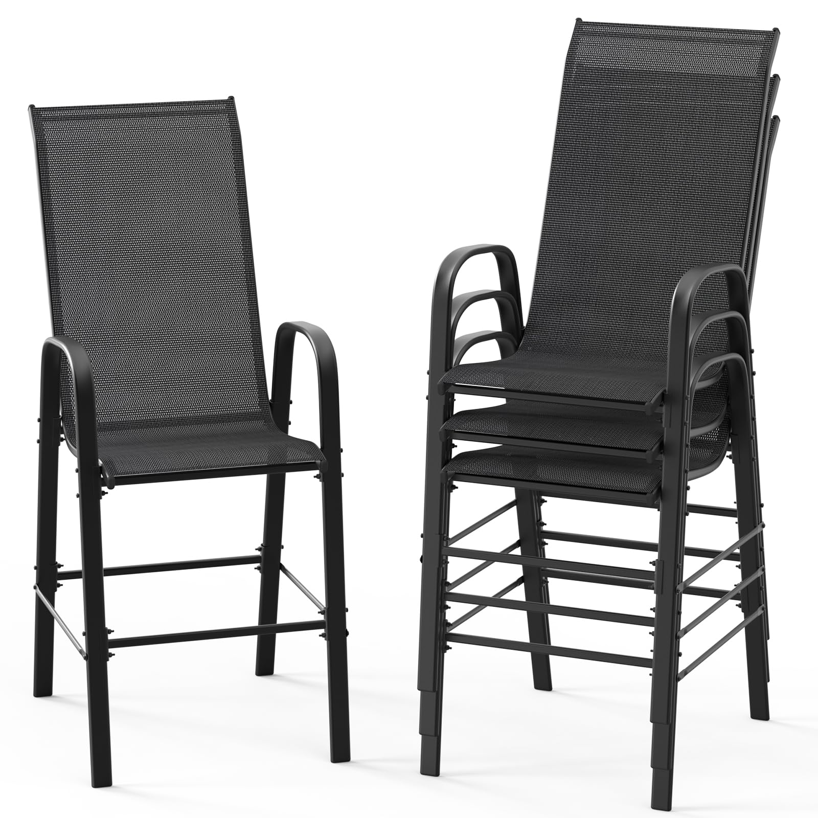 Image: VINGLI 4 Pack Stackable Outdoor Bar Chairs in an outdoor setting.
