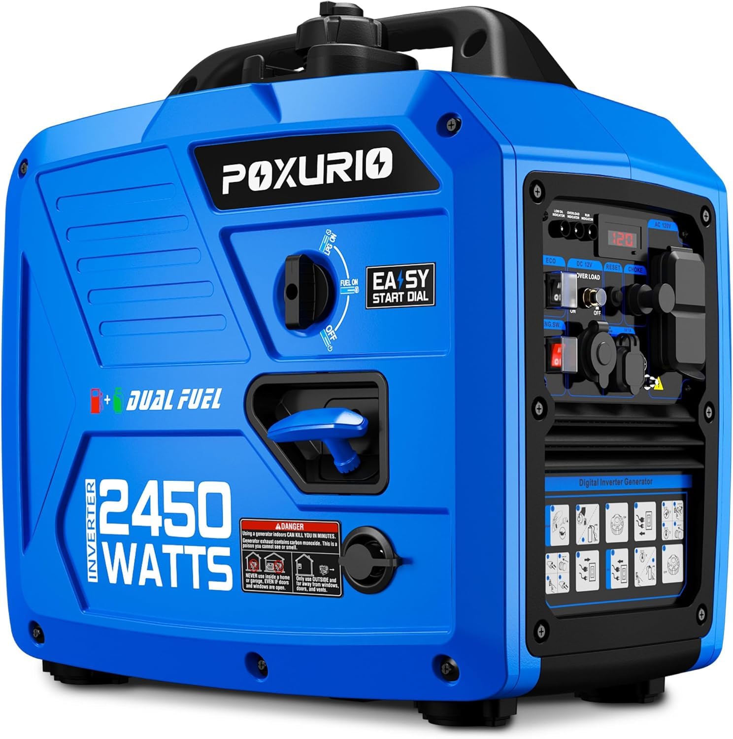 This manual provides essential information for the safe operation, maintenance, and troubleshooting of your POXURIO Portable Inverter Generator 2450W. Please read this manual thoroughly before operating the generator to ensure proper use and to prevent injury or damage.