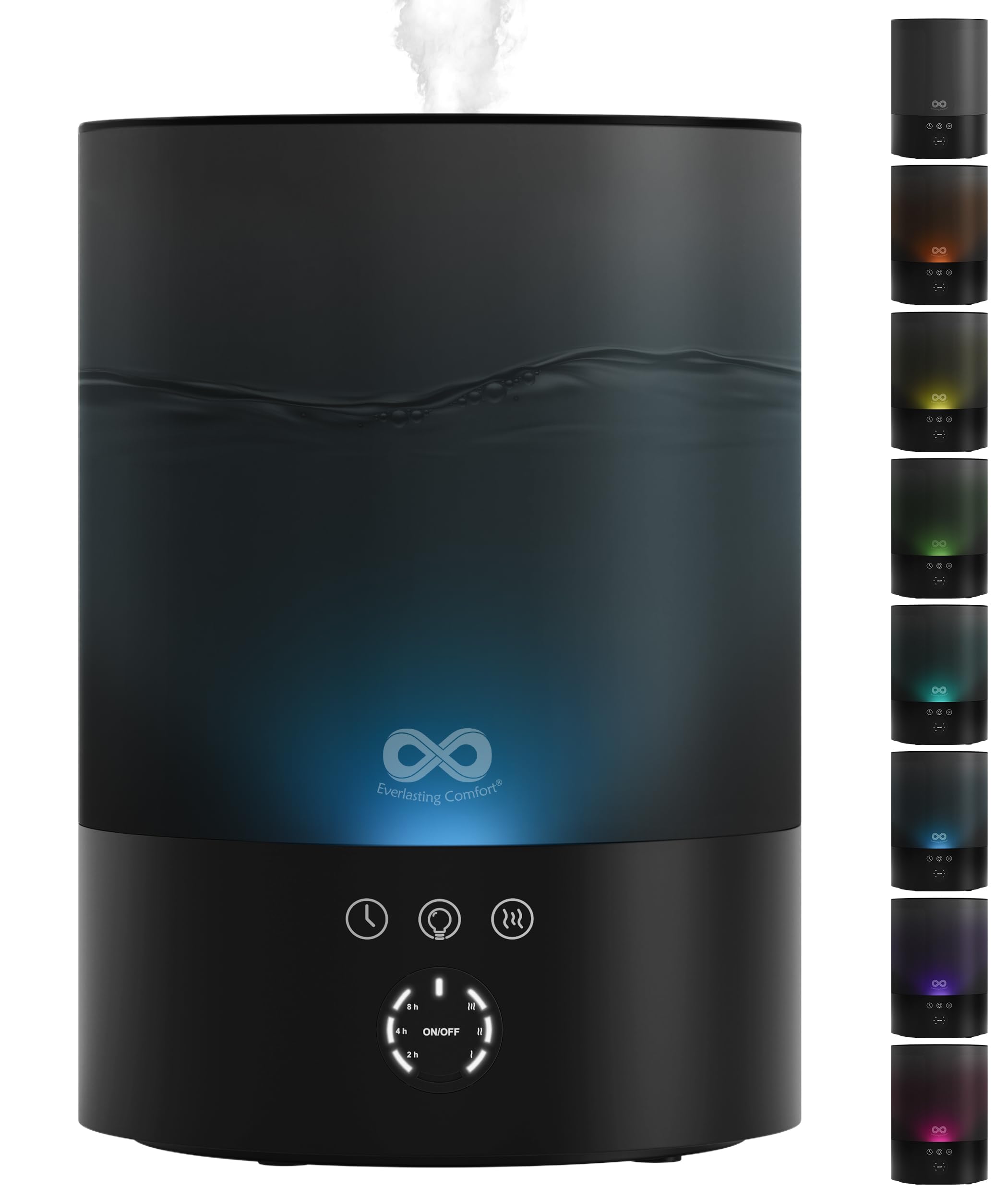 Thank you for choosing the Everlasting Comfort 2.5L Top Fill Humidifier. This ultrasonic cool mist humidifier is designed to enhance your indoor environment by adding moisture to the air, helping to alleviate dry skin, congestion, and other discomforts caused by dry air. It also features an essential oil diffuser, night lights, and convenient timer settings for a personalized experience. Please read this manual thoroughly before use to ensure proper operation and maintenance.